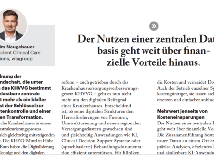 (Mannheim/Berlin, 28/05/2024) – vitagroup, the leading provider of interoperable and vendor-independent health data storage, based on openEHR standards, has chosen Amazon Web Services (AWS) as cloud provider with the aim to accelerate product development and utilize the speed and efficiency of AWS to securely deploy their solutions HIP EHRbase and HIP (Health Intelligence Platform) worldwide within minutes.